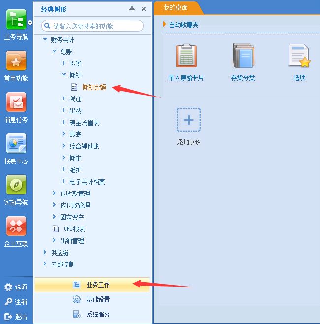 (2)点击业务工作-财务会计-总账-期初-期初余额