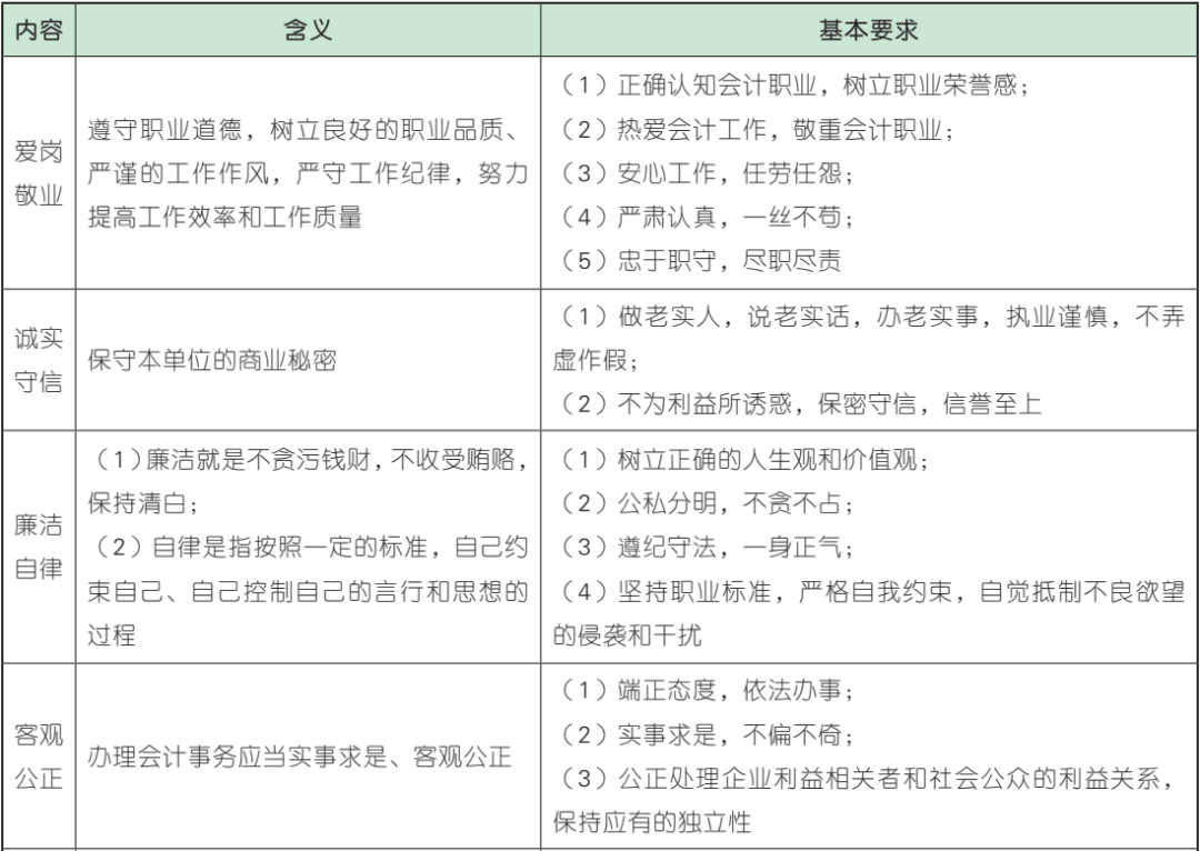 【解析】选项 A、B、D 符合题意,选项 C 不符合题意,客观公正是指会计人员办理会计事务应当实事求是、客观公正,要求会计人员端正态度,以客观事实为依据,依法依规办事;实事求是,不偏不倚;公正处理企业利益相关者和社会公众的利益关系,保持应有的独立性。故选 ABD。