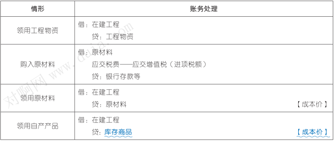 借:在建工程 【建造、更新改造固定资产过程中使用】